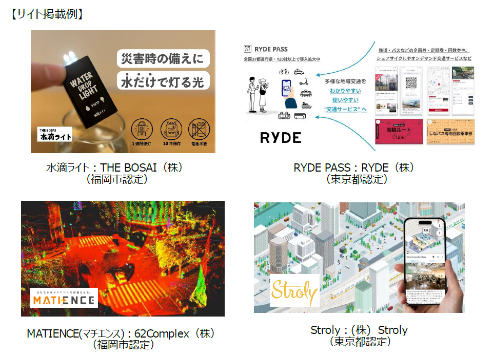 下記事業サイトに、参画自治体が認定したスタートアップ等の製品・サービスを掲載しております。